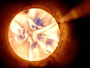 as solid carbon molecules we know as soot. The soot molecules flow out